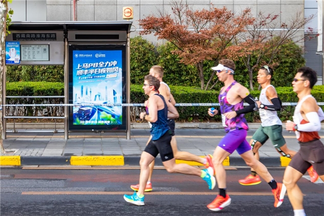 【赛中】跑者奋力奔跑之际,顺丰在沿线的公交站牌以鼓励文案作伴:“今日上马,你是主角”、“超越别人?超越自己!”“越跑越顺”……伴随跑者全程,传递精神力量,成为街巷间一道独特的风景线。沿途,顺丰更化身“奔跑助威站”,顺丰小哥手持鼓槌,用铿锵有力的鼓点搭配嘹亮的呐喊声,为跑者加油鼓劲!