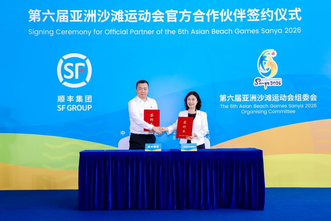 4月8日,顺丰集团与第六届亚洲沙滩运动会(以下简称“三亚亚沙会”)组委会正式签署官方合作伙伴协议。三亚亚沙会执委会常务副秘书长杜丽银与海南顺丰速运有限公司总经理谢兆省代表双方签署备忘录,顺丰集团品牌市场总经理杨帆等出席活动。