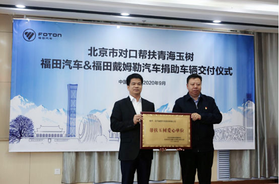 当前,北京市对口帮扶已成为新玉树发展的重要支撑。2016年9月,北京市怀柔区与杂多县签订了携手奔小康行动协议,并建立了双向沟通交流机制。根据北京市对口支援办、北京对口支援玉树指挥部和北京市怀柔区政府相关要求,福田汽车与福田戴姆勒共同联合,开启向青海省玉树市对口捐赠工作。