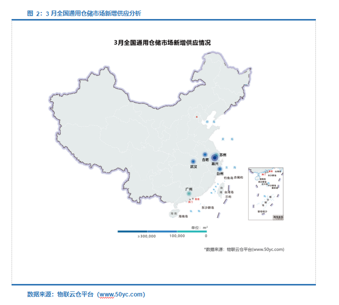 二、供应:通用仓库新增供应为78.35万㎡,武汉、嘉兴、苏州成供应主力军