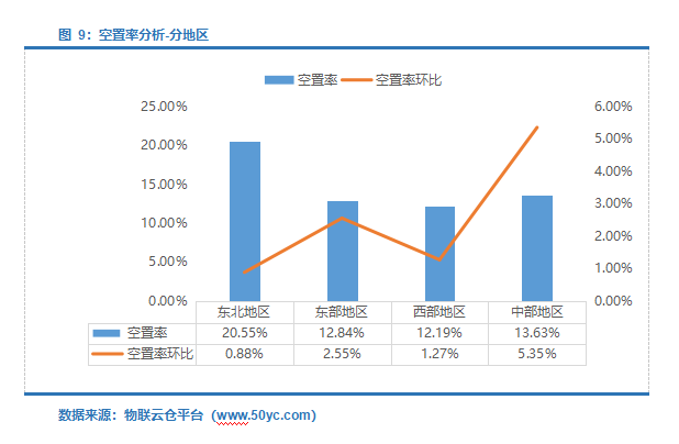 东北地区空置率最高,中部地区空置率环比涨幅最快。