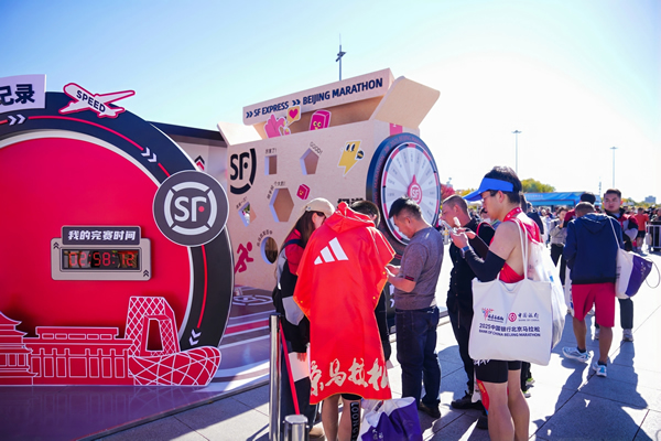 除此之外,顺丰为跑者们提供全方位的服务加持,传递触手可及的温暖:在终点站,设置充满惊喜与关怀的互动打卡展位,许多跑者在“完赛墙”前拍照打卡、参加抽奖游戏,并将现场照片分享到各个社交平台,为本次马拉松留下专属自己的参赛记忆。同时现场提供行李代寄服务,行李安排快速寄送到家,为跑者减轻负重,赶车返程更加轻松自如。