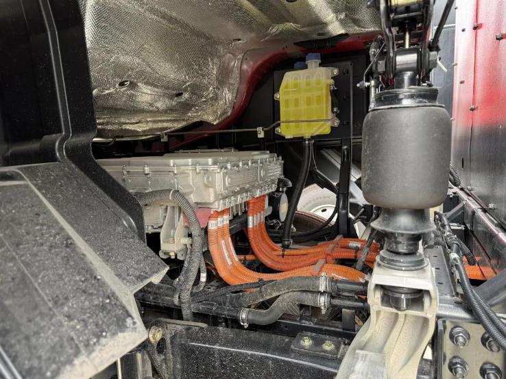与强悍电机相匹配的,是绿控4挡AMT变速箱。这套卓越的动力系统,彻底解决了传统手动挡在山区频繁换挡的劳累与顿挫问题。对于卡友来说,这意味着操作极大简化,解放了左脚和右手,降低了长时间驾驶的疲劳强度,同时能耗更优,系统能始终让电机工作在高效区间,有助于降低电耗,节约运营成本。