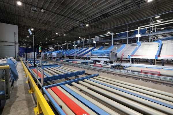 系统核心是一套罗地格定制的滑靴式分拣机,专为快递邮政包裹设计,拥有4个进料口与130个出料口,确保分拣的精准与效率。
