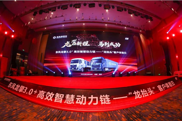 3月20日,农历二月初二“龙抬头”,以“龙启新程 马到成功”为主题的东风龙擎3.0⁺高效智慧动力链客户体验日在安徽阜阳盛大举行。这是继去年龙抬头发布龙擎3.0动力链后,东风商用车再度选择在这一传统吉日,为全新升级的龙擎3.0⁺动力链及搭载该动力链的东风天龙新KL揭开面纱。正如“龙抬头”所象征的生机与腾飞,东风龙擎如巨龙昂首,引领中国商用车动力技术迈向新高度。